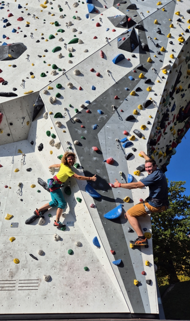 Unsere Ausbildung fand im Zeitraum vom 12.10.2025 bis 18.10.2025 im DAV Kletterzentrum Swoboda Alpin (Kempten/ Allgäu) statt. In dieser Halle haben wir uns sehr wohl gefühlt. Es gab einen Indoor- und Outdoorkletterbereich, einen Boulderbereich, Schulungsräume und einen tollen Gastronomiebereich mit einem eigenen Koch. In dieser Woche konnten wir viel Neues lernen, uns persönlich verbessern und viel spezifisches Wissen aufsaugen. Wir haben alles gegeben, unseren Körper an den Rand des möglichen (Physisch & Psychisch) gebracht und somit alle Prüfungen bestanden!