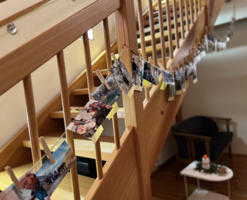 Zeit investiert wurde erneut auch in die traditionelle Bilderausstellung mit Impressionen von Höhepunkten aus dem Vereinsleben – einige Gäste nutzten die Gelegenheit und erfreuten sich an den vielseitigen Aufnahmen, die an Leinen gespannt entlang Geländern und Fenstern hingen.