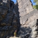 Heute läuft es einfach richtig gut und ich fühle mich super und den ganzen Tag geht mir noch ein kleines Highlight durch den Kopf: mache ich heute die Löschnerwand? Einer Seilschaft konnte ich bei der Besteigung schon zusehen, souverän und entspannt sah das aus. Also los! Das Abheben an sich ist schonmal speziell, mit weitem Ausspreizen überwinde ich die ersten 2 m und in ca. 5 m liegt das erste ringwertige Ufo. Herrlich. Noch eine kleine heikle Passage passiert und ich komme auf den Absatz der Südkante. Der Blick weitet sich. Was eine Aussicht. Hier oben hat die Natur noch einen wunderbaren Ausstieg (links!!!) für die Kletterwelt eingerichtet: an 3 bombigen Schlingen und großen Henkeln kommt der Ausstieg daher. Ich bin oben. So oft ging mir durch den Kopf, ob ich diesen Weg mal klettern würde. Heute war die Zeit reif. Als Hilda nachkommt, muss ich sie erstmal ganz fest drücken, es ist so eine Freude, diesen Moment zu teilen. Auch Firle und Anna kommen nach und freuen sich über die recht lange und anspruchsvolle Bergfahrt, nachdem auch sie sich jeweils den Winkelriss hochgefürchtet haben. Als Abschluss des Tages besteigen wir noch den Ottostein über den Neuen Südostweg. Fast wanderwegartig (an diesem warmen Tag auch sehr trocken) kommt er daher, mit vorgeformten Tritten ist der Weg eindeutig gezeichnet.
