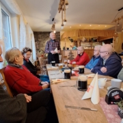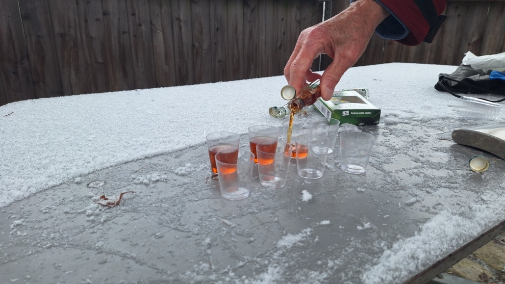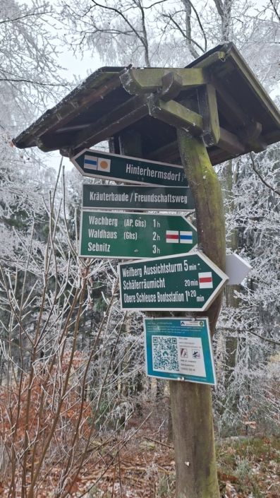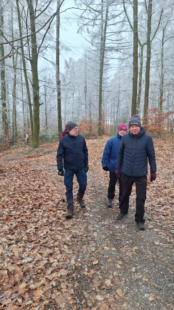 Wie schnell doch ein Jahr vergeht und schon stand wieder der Jahresabschluß unseres KC auf dem Terminkalender. Pünktlich um 10 Uhr trafen sich daher am 17. Dezember 9 aktive Kletterfreunde zur gemeinsamen Fahrt nach Hinterhermsdorf in der Sächsischen Schweiz. Ziel war die Kräuterbaude etwas außerhalb der Ortslage. Dort angekommen machten sich 7 Sportfreunde auf eine kleine Runde durch die herrlich mit Raureif verzauberte Landschaft. Die Sonne schaffte es zwar nicht durch den Hochnebel, aber auch so war es eine schöne Tour zum Aussichtsturm auf dem Weifberg, 577 m hoch gelegen. Den Aufstieg haben wir uns wegen fehlender Aussicht gespart, dafür gab es etwas Hochprozentiges zum Aufwärmen. Zurück an der Baude gingen wir zum gemütlichen Teil über, lecker Essen und Getränke wurden gereicht, KC-“Chef” Uli hielt eine kleine Rede, den Jahresrückblick machten schöne Bilder an der mitgebrachten Leinwand und ein kleines Geschenk komplett. Geklönt über das vergangene Jahr und zukünftige Pläne wurde natürlich auch und so war die Zeit für die Rückfahrt schnell gekommen. Die Jungfernstürmer wünschen allen Vereinsmitgliedern und ihren Familien ein schönes Weihnachtsfest und einen guten Rutsch ins neue Jahr. Wir sehen uns spätestens zur Neujahrswanderung am 10. Januar. Berg heil 2026!