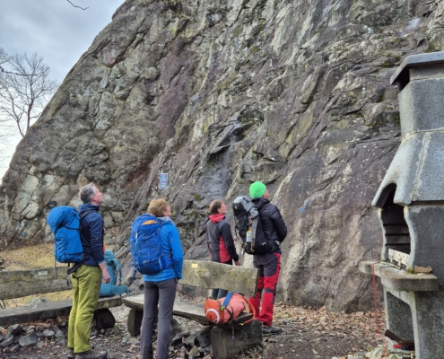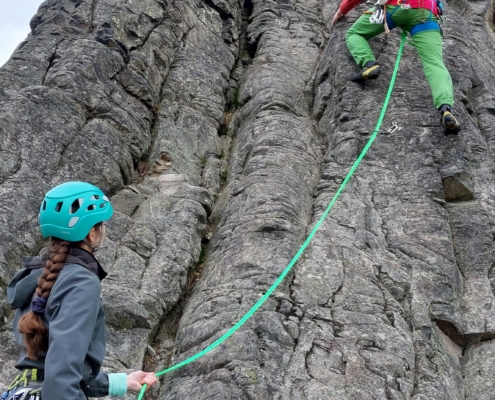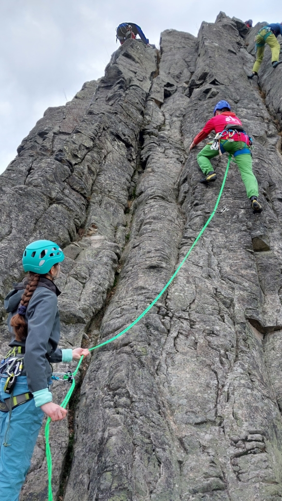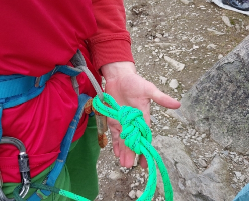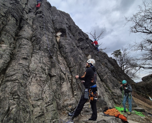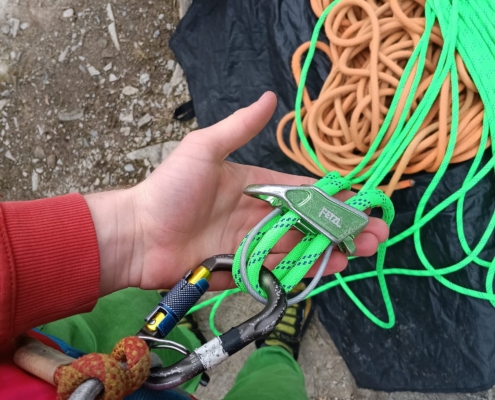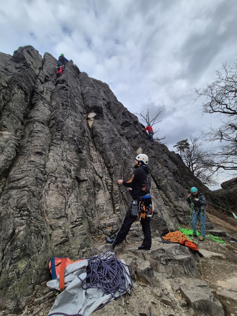 Neben dem Genuss stand auch ernsthaftes Training auf dem Programm. Zwei Steinböcken wurden im Umgang mit Halbseilen geschult. Einbinden, Seilmanagement, Standplatzorganisation, Kommunikation – alles wurde geübt, besprochen und direkt am Fels umgesetzt.