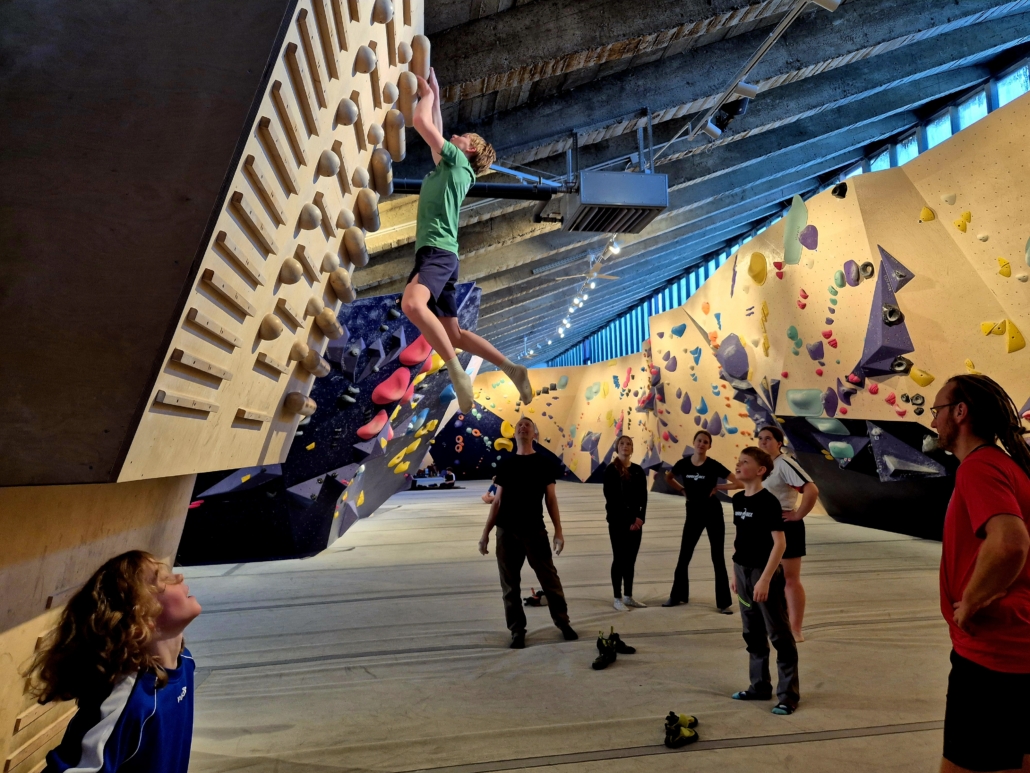 • Die Erstürmung: Kaum an der Wand, gab es kein Halten mehr. Unsere kleinsten Boulderprofis zeigten den Großen mal direkt, dass Schwerkraft eigentlich nur eine Empfehlung ist.