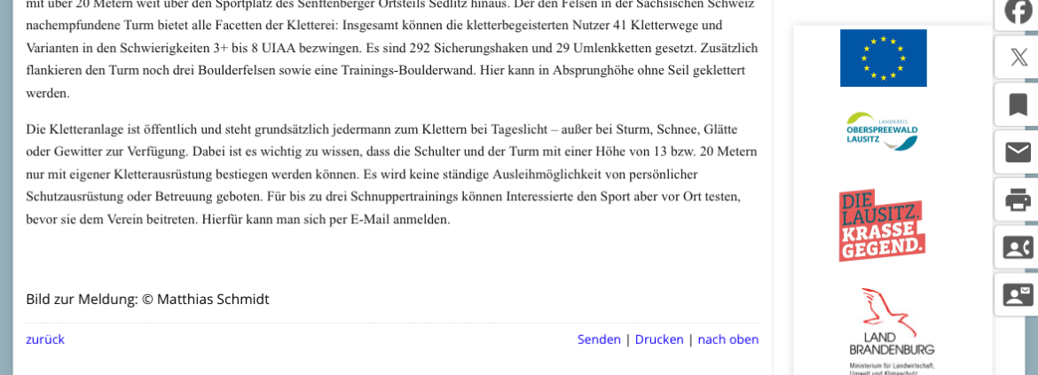 Wir freuen uns sehr: Unser Sedlitzer Kletterturm „Landmarke Sedlitzer Turm“ wurde von der LAG Energieregion im Lausitzer Seenland e.V. zum Projekt des Monats Dezember 2025 gekürt.