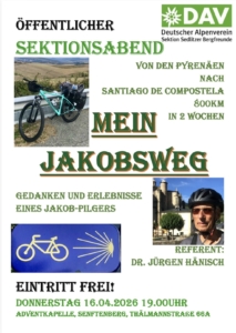 öffentlicher Sektionsabend: Jakobsweg mit dem Rad